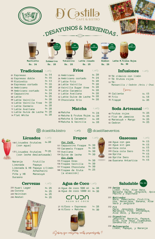 D’Castilla Café & Bistró es una Cafetería premium donde la gastronomía, pastelería de autor y diseño se unen para crear experiencias memorables.